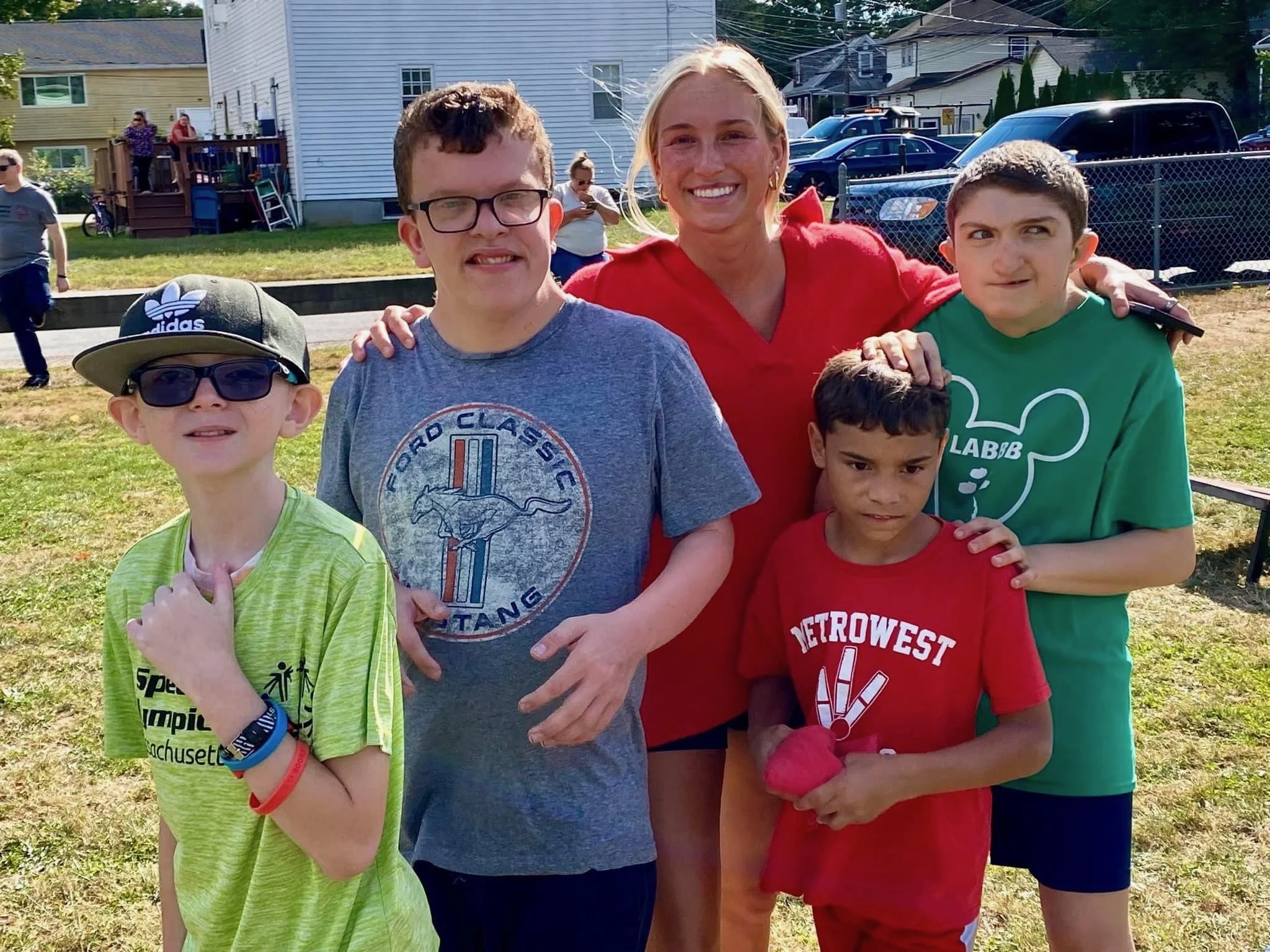 Alanna Cooney, Special Olympics Coach (daughter of Joellyn & Mike Ripp) with members of the Metrowest FLyers Special Olympics team